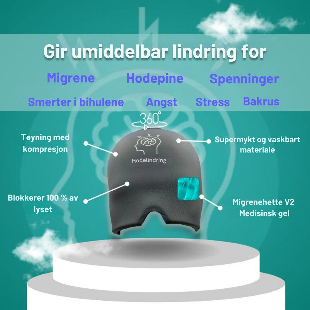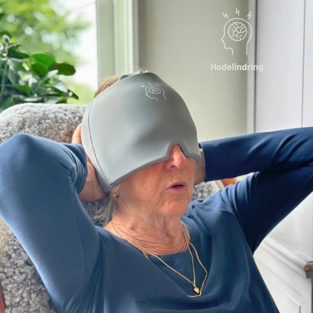 Migrenehetten kombinerer kompresjon med medisinsk gel som kan både kjøles ned og varmes opp.