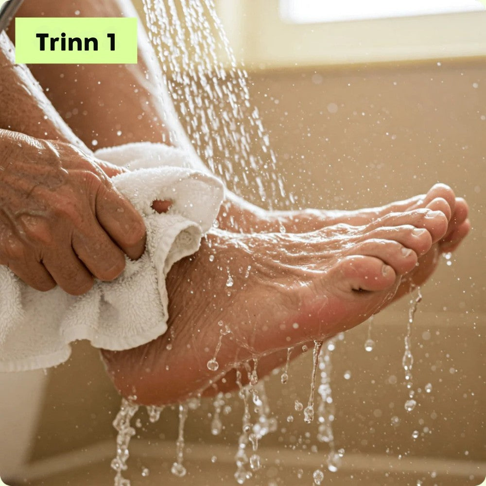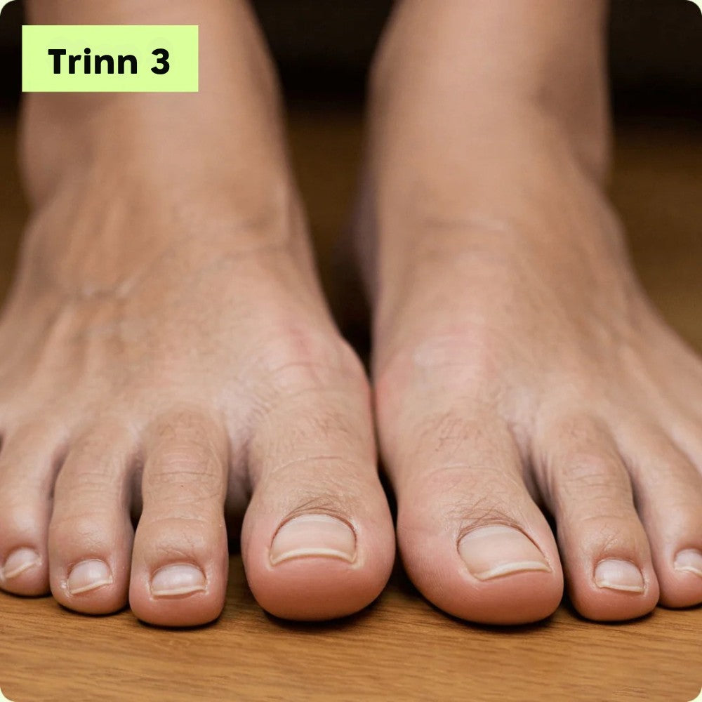De fleste merker mindre kløe og lukt innen 1–2 uker. For helt klare, sunne føtter du trygt kan vise i sandaler og gå barbent med, fungerer 4–6 ukers jevn bruk best.