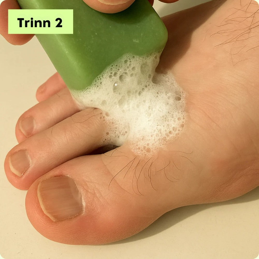 De fleste behandlinger virker bare på overflaten. Såpen vår trenger dypt ned i hudlagene der soppen gjemmer seg, og dreper den helt i stedet for bare å dempe symptomene.