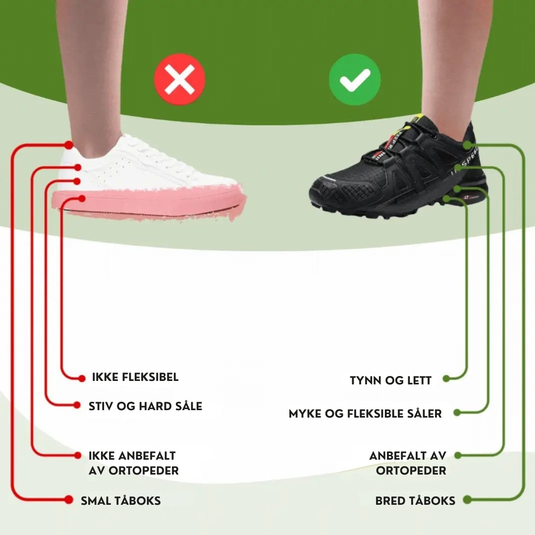 - STIV: En stiv sko begrenser bevegelsen i foten, noe som resulterer i svakere muskler og stivere ledd.
